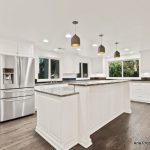 Inside, the home offers a warm, inviting layout with clean lines, solid wood finishes, and abundant natural light. The main level features an updated chef’s kitchen with quality appliances, quality cabinetry, and quartz countertops that flow effortlessly into the living and dining areas—ideal for gatherings of any size.